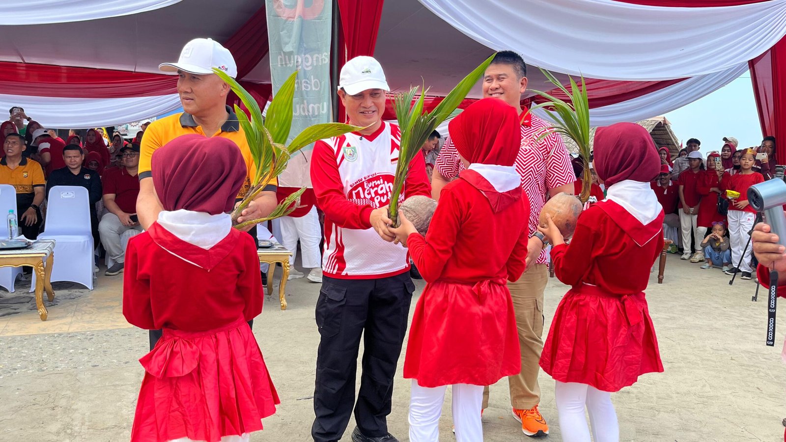 Usai penanaman, acara dilanjutkan dengan penyerahan piagam dari Museum Rekor Dunia Indonesia (MURI) yang diberikan langsung oleh Direktur Operasional MURI, Jusuf Ngadri, dalam kategori penanaman kelapa terbanyak di pantai.