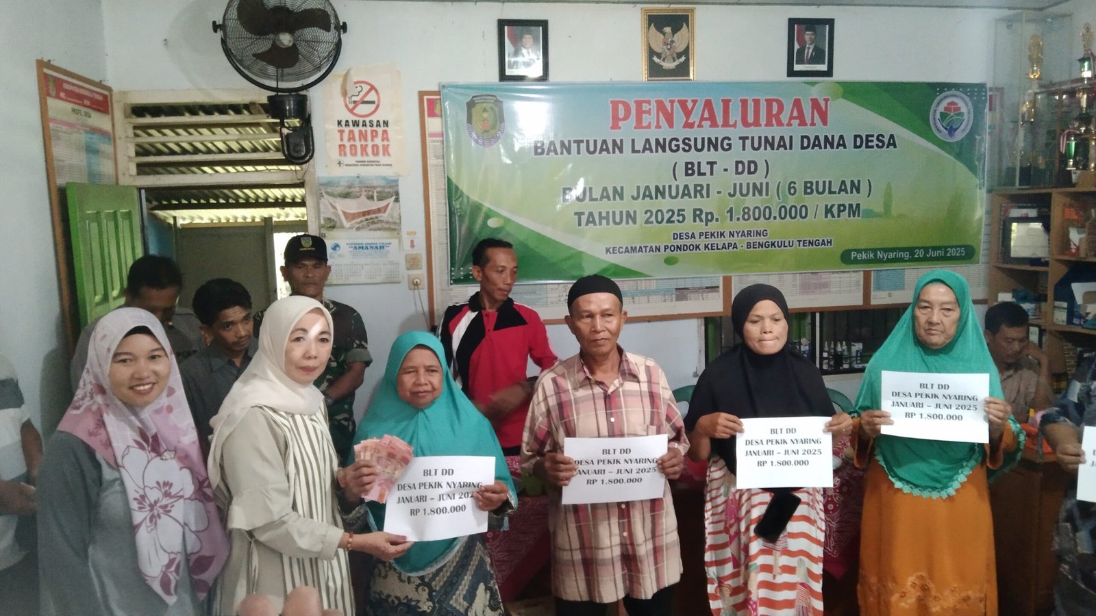 Bengkulu Tengah – Pemerintah Desa Pekik Nyaring, Kecamatan Pondok Kelapa, Kabupaten Bengkulu Tengah, melaksanakan kegiatan penyaluran Bantuan Langsung Tunai (BLT) pada Jumat, 20 Juni 2025. Bantuan ini diberikan kepada 30 orang warga yang tergolong sebagai Kelompok Penerima Manfaat (KPM).