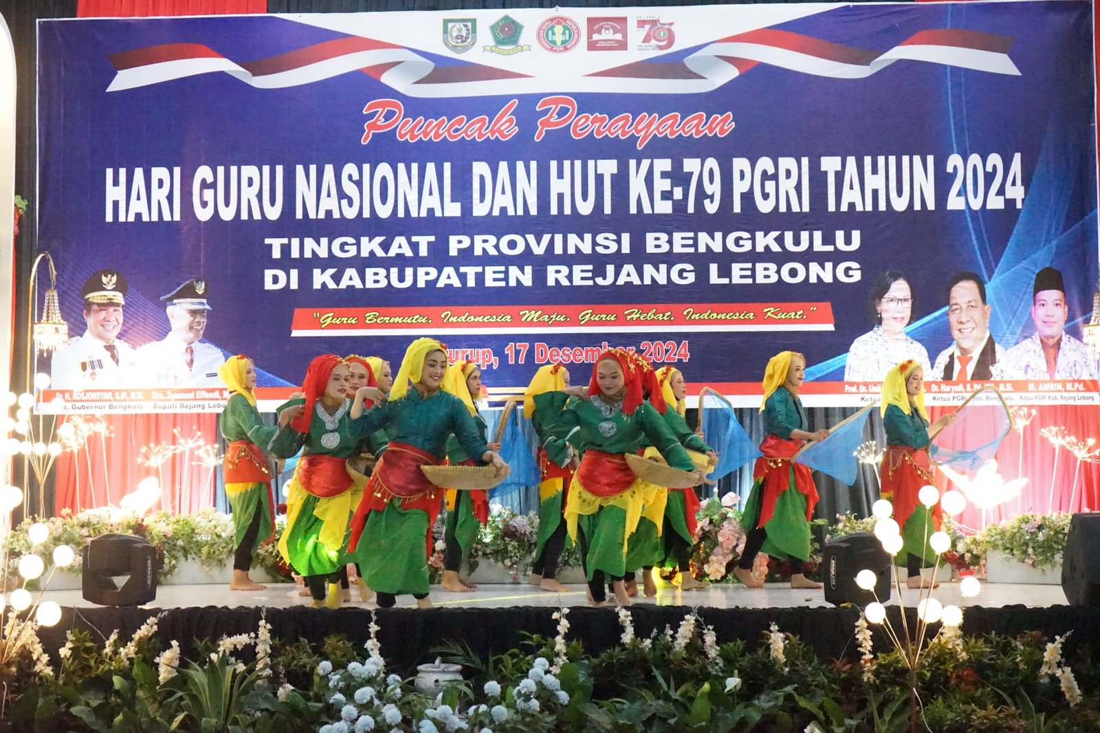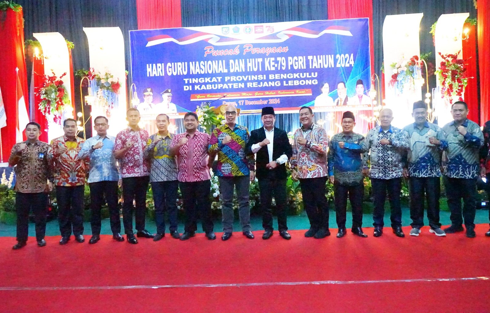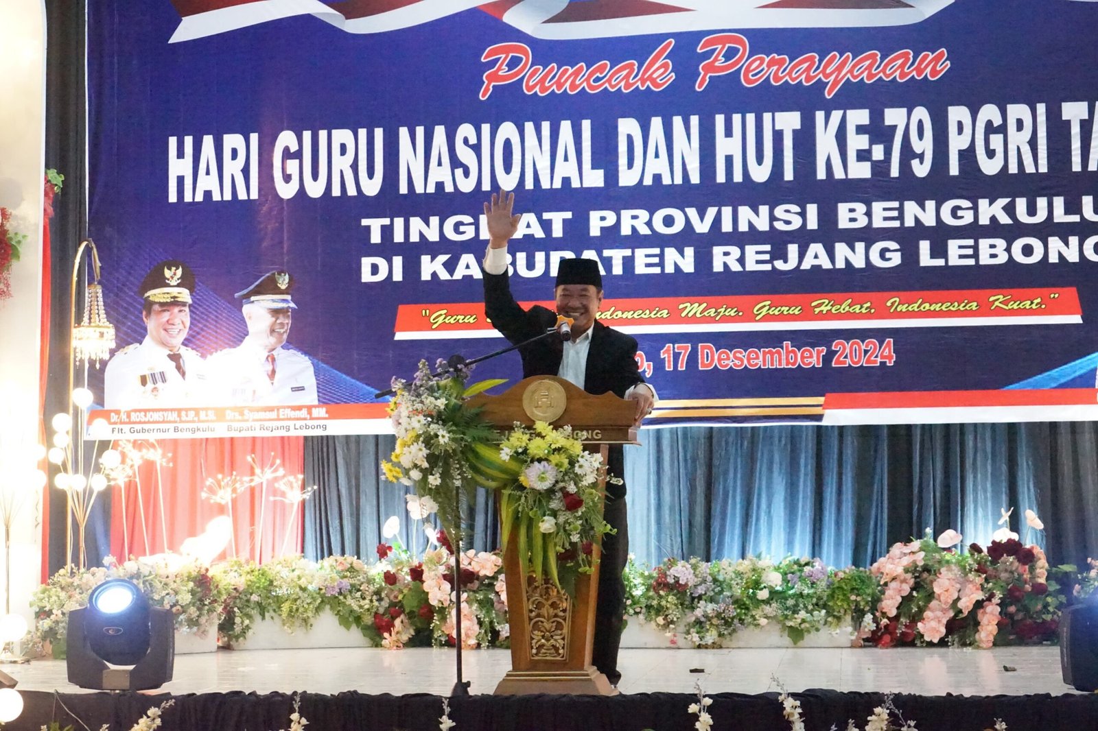 Pelaksana Tugas (Plt) Gubernur Bengkulu, Rosjonsyah, menghadiri acara ramah tamah dalam rangka puncak peringatan Hari Guru Nasional (HGN) dan HUT ke-79 PGRI Tingkat Provinsi Bengkulu yang dipusatkan di GOR Kabupaten Rejang Lebong, Senin (16/12/2024) malam.
