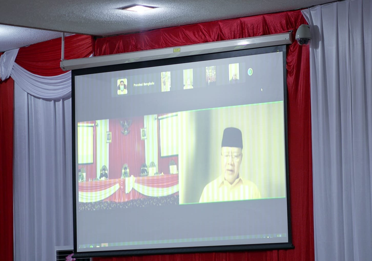 Walaupun sedang bertugas di luar provinsi, Gubernur Bengkulu Rohidin Mersyah tetap berkesempatan menyampaikan penjelasan Nota Keuangan mengenai Rancangan APBD-P Provinsi Bengkulu Tahun Anggaran 2024 secara virtual pada Rapat Paripurna DPRD Provinsi Bengkulu, Selasa (20/8).